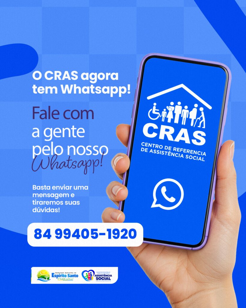 Agora ficou ainda mais fácil falar com a gente! O CRAS de Espírito Santo/RN está no WhatsApp para tirar suas dúvidas e facilitar o seu atendimento. É só mandar uma mensagem para o número: (84) 99405-1920 e estaremos prontos para te ajudar!