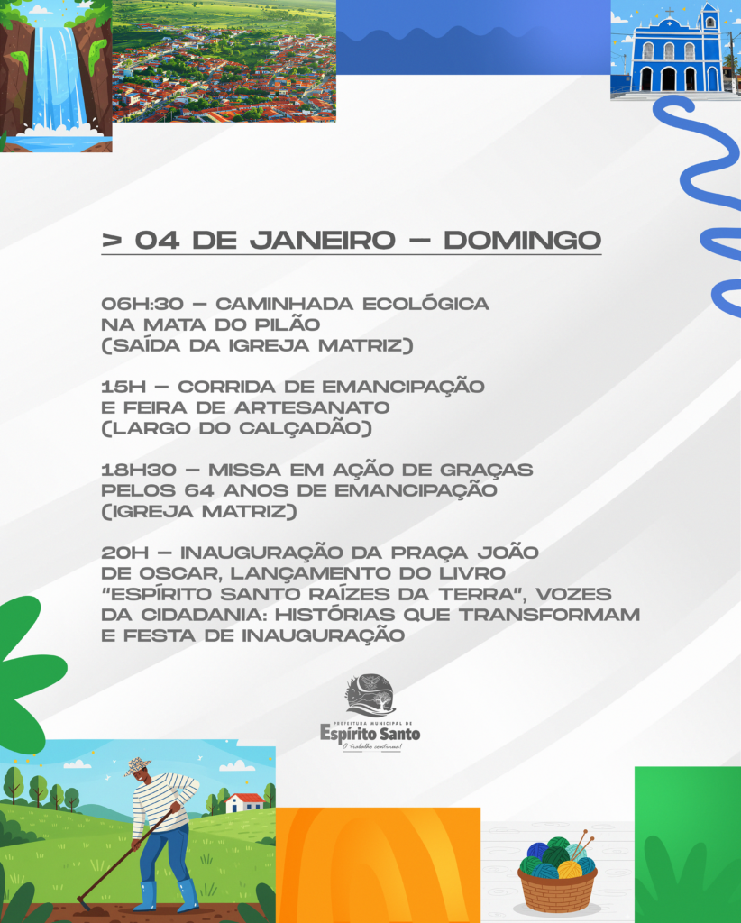 No próximo 04 de janeiro, nossa cidade celebra seu aniversário de 64 anos com uma programação repleta de emoção, cultura, fé e muita festa. Um dia inteiro dedicado à nossa história, nossa gente e nosso futuro.